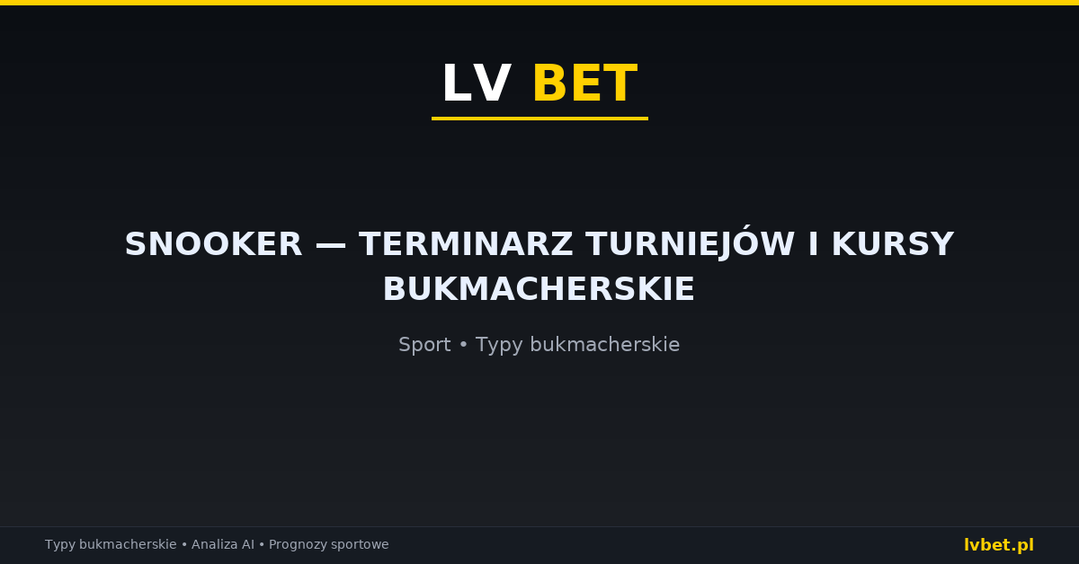 Obstawianie Snooker w LV BET to szeroka oferta zakładów: od wyników poszczególnych zawodów, przez klasyfikacje generalne, po zakłady specjalne (props). Strona aktualizowana jest codziennie z najnowszym terminarzem i kursami.